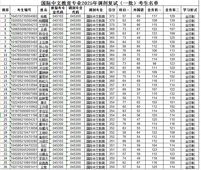 国际中文教育专业2025年调剂复试(第一批)考生名单