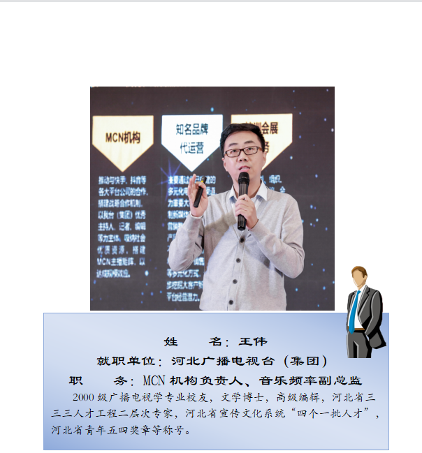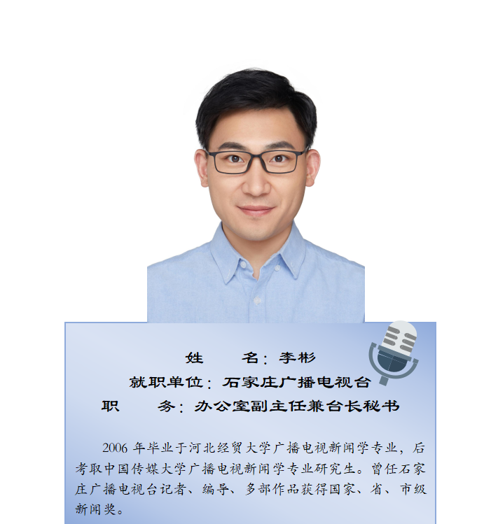 中国传媒大学博士,EMC易倍官方网站文化与传播公司副教授,硕士生导师,研究方向为视听新媒体、移动传播。先后在报社、电视台、杂志做过记者、编辑,经历从地市级、省级到国家级媒体的跨越。2007年至今,担任河北广播电台、河北电视台节目评议专家,撰写评议文章300余篇。2018年,荣任中央电视台《法律讲堂》栏目签约主讲人。科研成果:2018年,主持国家级虚拟仿真实验教学项目《融媒体新闻制作流程虚拟仿真项目》主持省部级科研项目3项,厅级科研立项10余项,在国内外刊物发表论文30余篇。