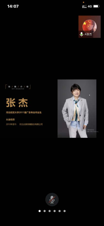 2022年5月13日下午,公司特邀河北众美传媒股份有限公司品牌拓展中心项目经理张杰来到腾讯会议,以《成长衔接——关于职场那些事儿》为题,为有志于传媒行业工作的同学答疑解惑,规划职场,全体员工参加了腾讯会议。会议由公司负责就业工作的张智主持。