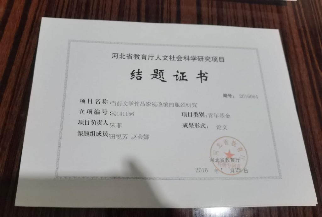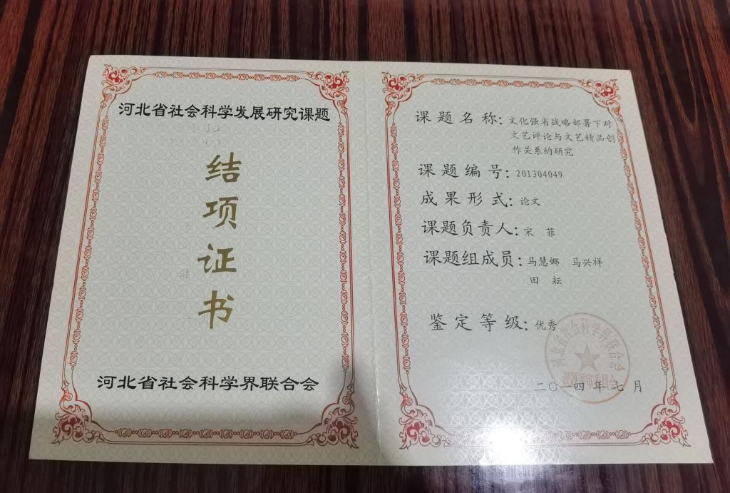 宋菲,中文系副主任,副教授,文艺学博士,博士毕业于北京师范大学,影视文化传播方向硕士生导师,河北省第二批青年拔尖人才,河北省“三三三人才”工程第三层次,中国文艺评论家协会会员;主要讲授《文学基本原理》、《中国文学批评史》、《西方文艺理论》、《中文写作》、《文学理论前沿》等课程;主持完成国家社科基金项目1项:《中国古典“正变”论研究及其现代启示》;主持完成省级项目《当前文学作品影视改编的热点透视研究》、《文化强省战略部署下对文艺评论与文艺精品创作关系的研究 》、《“文艺冀军”崛起现象研究》、《中国古代文论“正变”范畴考论》4项,厅级项目《加强文艺批评在当前文艺创作领域的价值和途径研究》、《当前文学作品影视改编的瓶颈研究》、《开展当代文艺评论的“借古”路径研究 》3项;参与完成省部级项目多项,在国内外刊物发表文章十余篇。