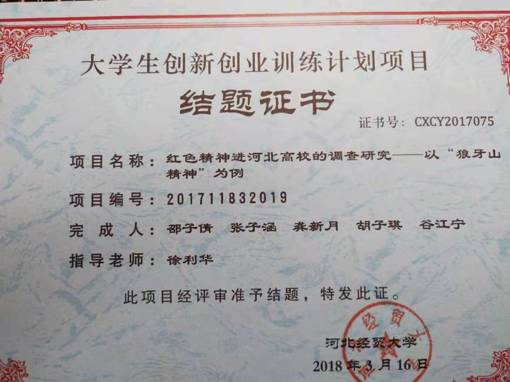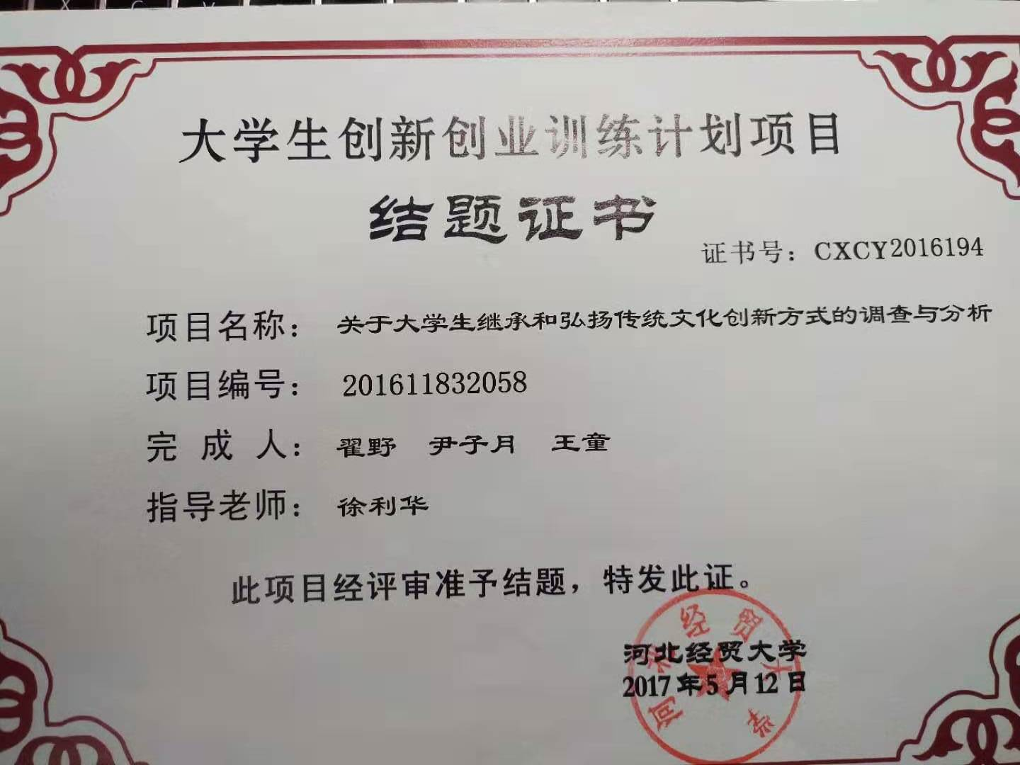 2. 主持2018年国家级老员工创新创业训练计划项目,现已结项