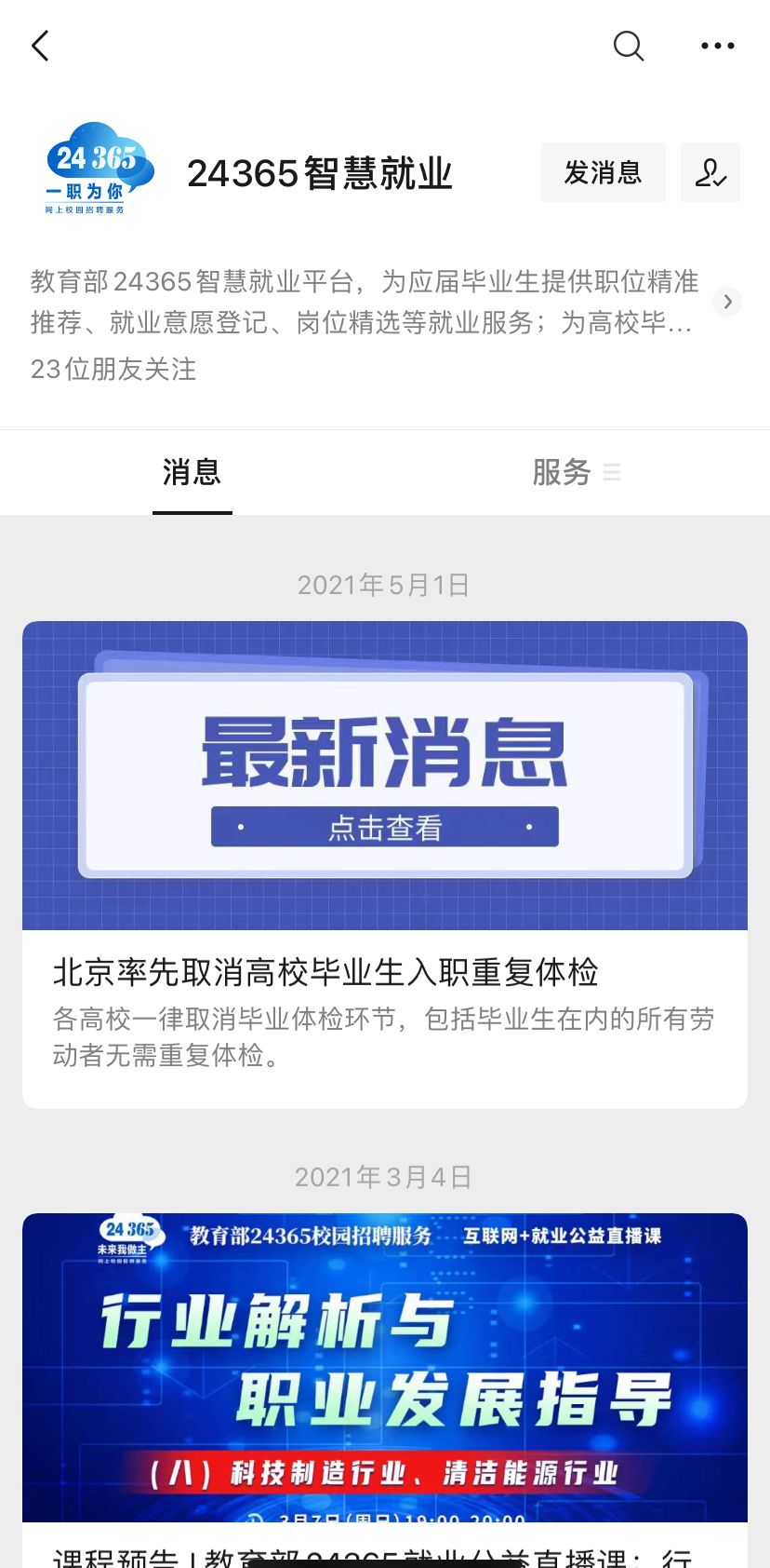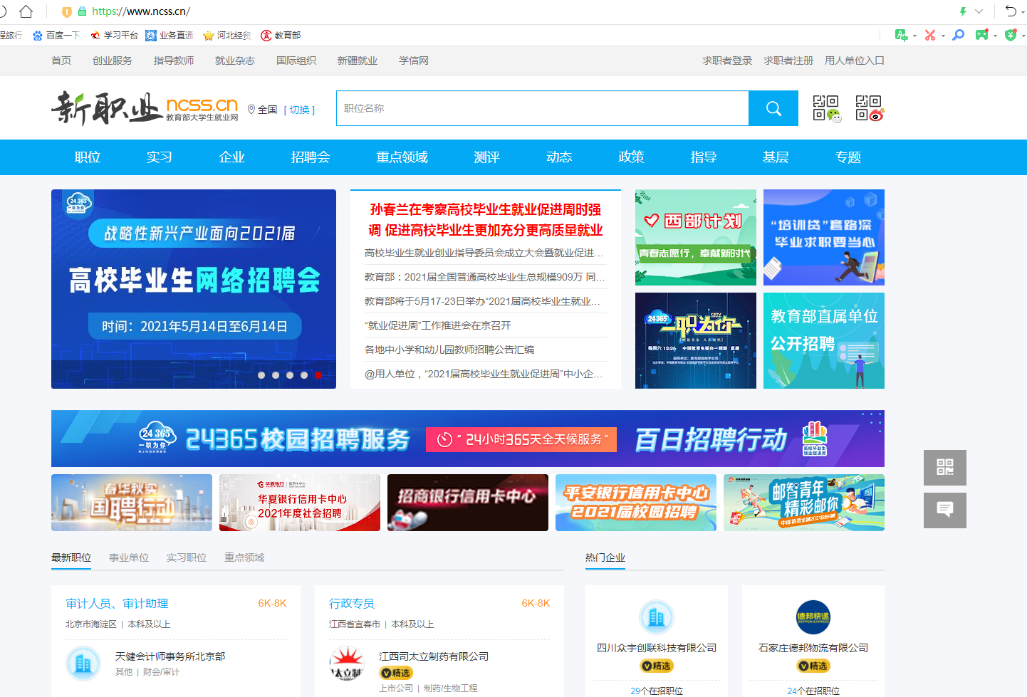教育部24365智慧就业平台,为应届毕业生提供职位精准推荐、就业意愿登记、岗位精选等就业服务;为高校毕业班辅导员提供工作任务提醒、毕业生信息监控等服务。