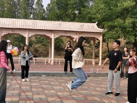 第二个项目是跳绳。经过几次尝试后,每个队伍都找到了属于自己的节奏。比赛正式开始,每组同学都齐心协力,喊着响亮的节拍,把握着节奏。最终,张丰同学的队伍以超强的优势和几乎零失误的默契取得了31次的好成绩,遥遥领先!
