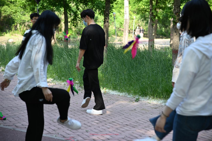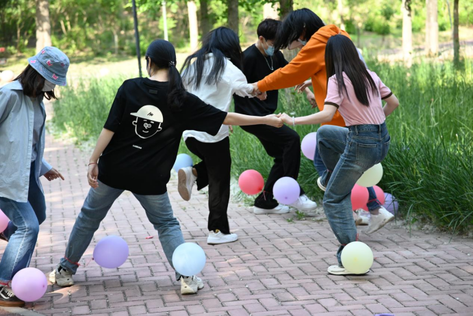 第四个项目是脚踩九洲,在通力合作的相互配合下,一声声“砰”,为队伍们出彩的表现喝彩,感受全身心投入带来的酣畅体验,气球爆裂声与同学们的欢声笑语充斥着整个赛场。