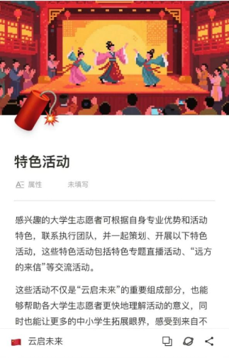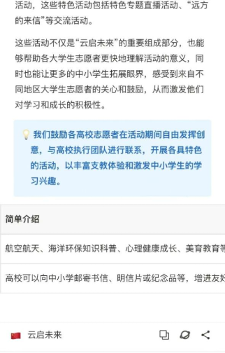 本次“云启未来”特色活动,鼓励老员工志愿者结合专业优势,开展特色专题直播与“远方的来信”等交流活动。老员工志愿者们将自己掌握的专业知识分享给中小员工们,不仅丰富了他们的知识,也开拓了他们的眼界,让他们对未来的学习生活充满期待。不管你想分享航空航天、海洋环保的奇妙知识,还是想用书信传递成长祝福,都能在这里找到发光的舞台,让经贸的青春力量,跨越山海,点亮更多求知眼眸。