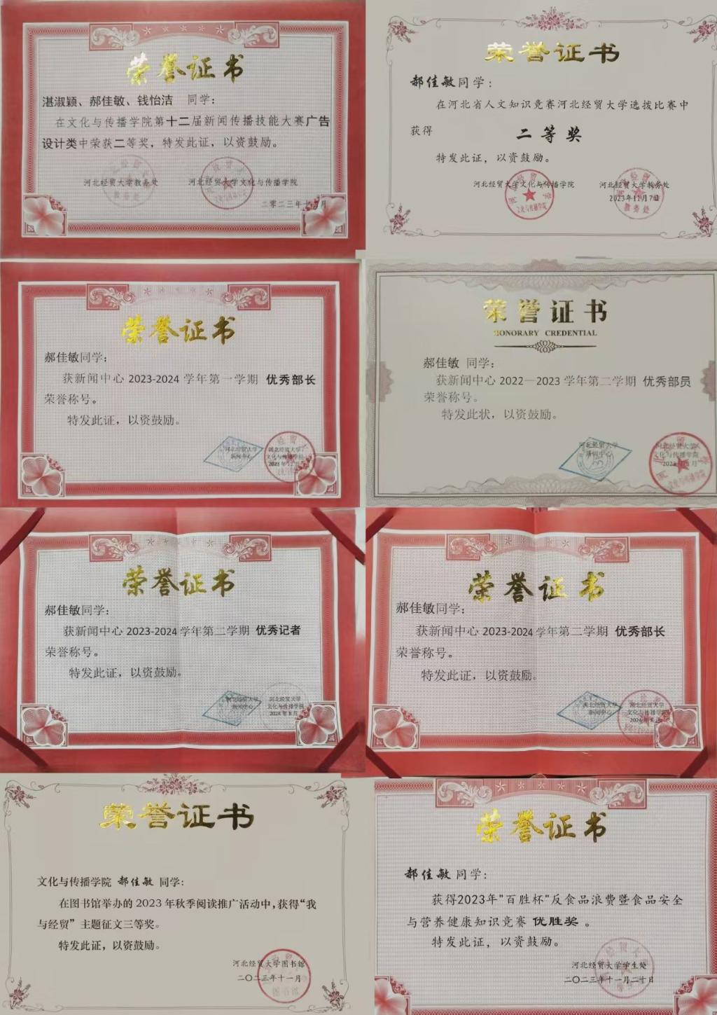 河北省人文知识竞赛校内选拔赛二等奖两次