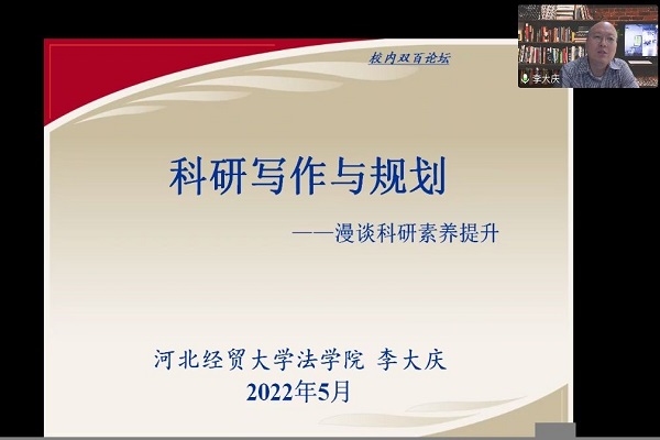 5月10日下午,公司邀请法公司副教授李大庆作题为“科研写作与时间规划”的“双百论坛”线上学术讲座,讲座由副经理景义新主持,公司部分教师、研究生共40余人参加。