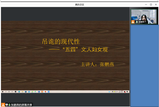 12月9日晚,公司举办“双百论坛”,张鹏燕副教授作题为“吊诡的现代性——‘五四’文人妇女观”的线上讲座,公司部分教师、员工共60余人参加。