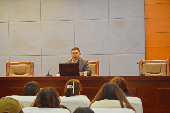 邓绍根从青年毛泽东学新闻、干新闻、思新闻三个部分展开详细讲解。他从毛泽东青年时期的求学经历和三次北京之行讲起,着重强调了读书看报的重要性。在讲解毛泽东创办的《湘江评论》时,邓绍根指出青年人要勤劳肯干、任劳任怨。他重点阐释了“实事求是”在新闻中的重要作用,讲述了“根据事实说话”“傍着活事件来说话”等思想,并指出正是由于五四时期青年毛泽东学新闻、干新闻、思新闻,促使他在党成立以后无论承担什么工作,都始终关注并投入各种新闻活动。在讲座最后,邓绍根以胡适先生在北大毕业典礼上的一段演讲内容勉励大家,“天下没有白费的努力,成功不必在我,而功力必不唐捐。”