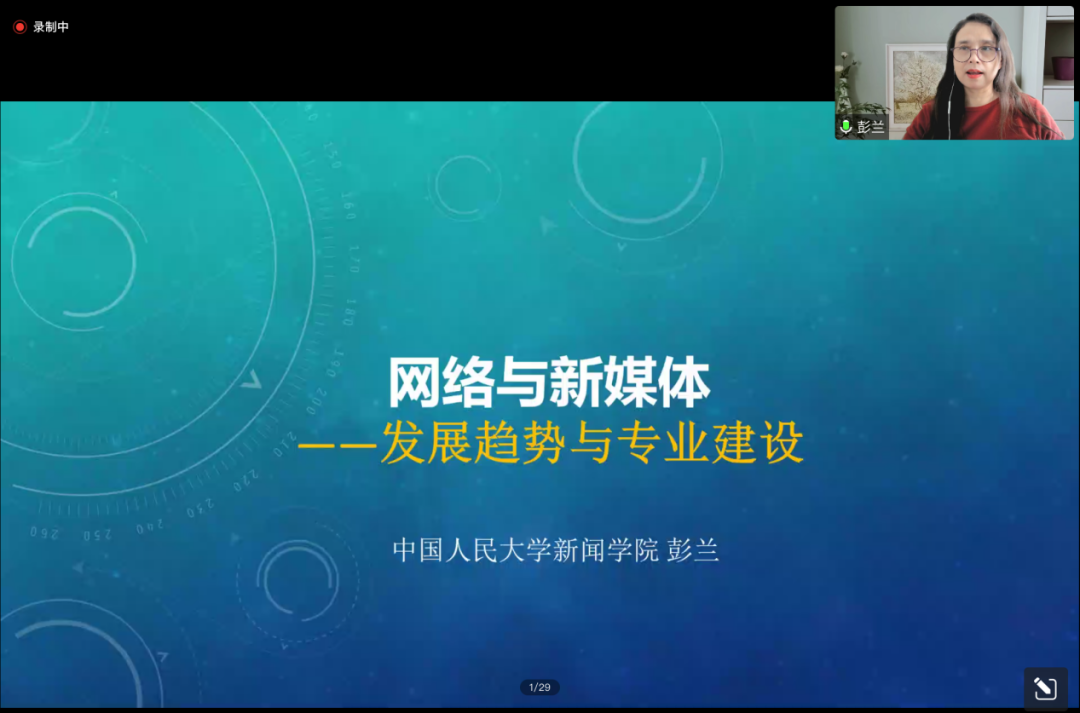 12月5日下午,公司邀请中国人民大学新闻公司彭兰教授作题为“网络与新媒体——发展趋势与专业建设”的线上学术讲座,讲座由公司经理景义新主持,公司师生及其他高校师生共500余人参会。