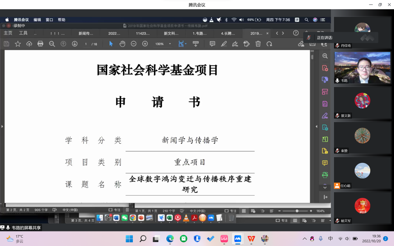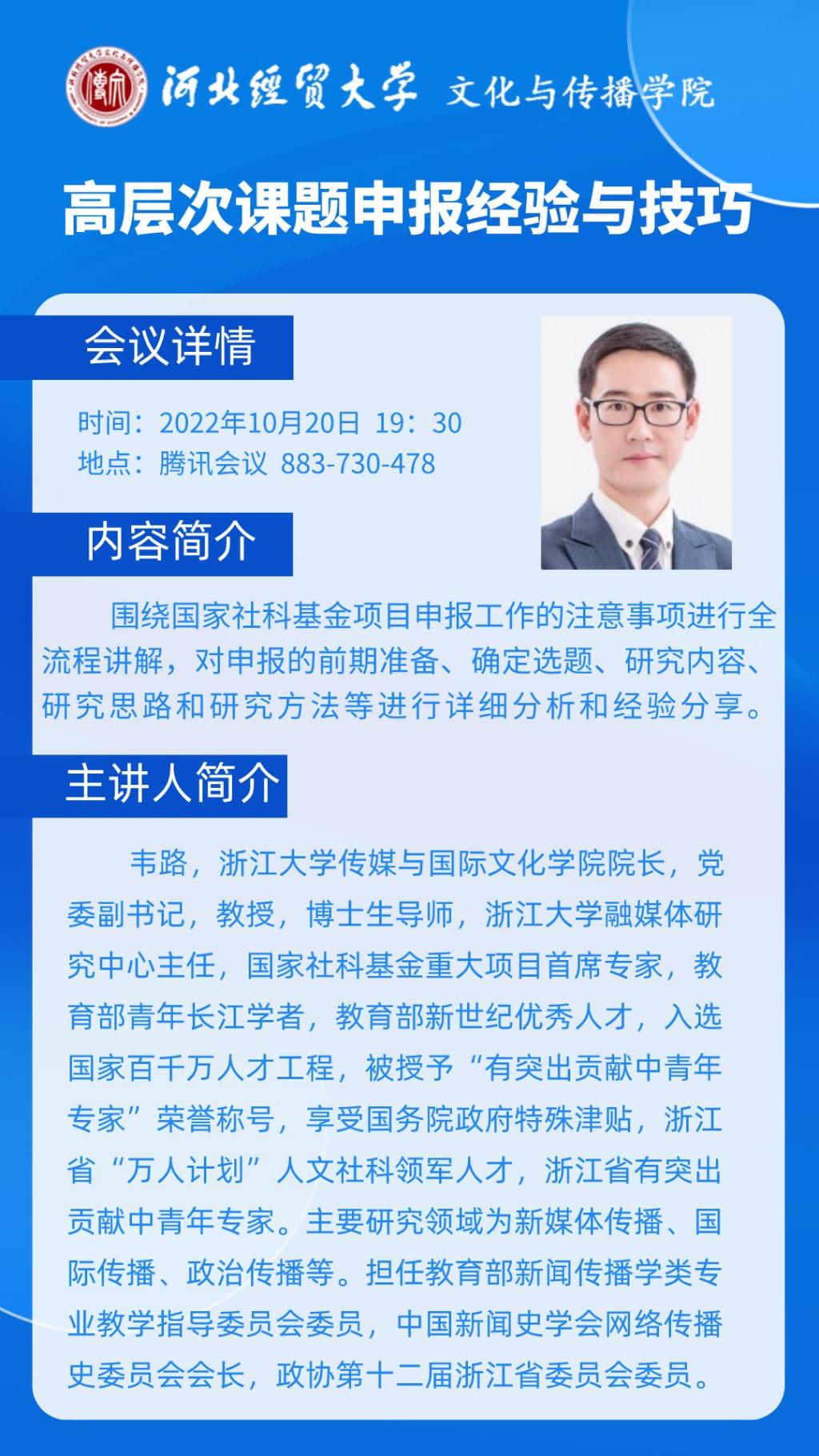 10月20日晚,公司邀请浙江大学传媒与国际文化公司经理韦路教授作题为“高层次课题申报经验与技巧”的线上学术讲座,讲座由经理景义新主持,公司师生共130余人聆听。