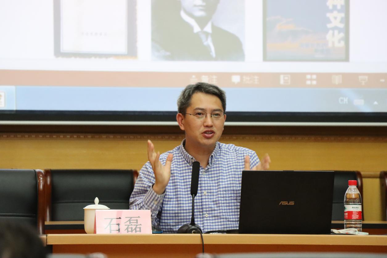 石磊教授首先对新工科、新医科、新农科、新文科“四新”建设进行了介绍,又从“科技与人文的对立与协同”、“技术发展与价值重塑”、“百年变局与话语主导”、“论域拓展与交叉融合”四个方面重点讲述了新文科“新”在何处,指出新文科的实质是与科学技术相适应,推动哲学社会科学与新科技革命交叉融合,创造光耀时代、光耀世界的中华文化,提升中国文化软实力。