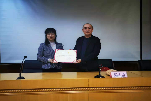 讲座结束后,仇静莉为杨小虎导演颁发了影视文化传播专业硕士研究生社会导师聘书。(通讯员:文化与传播公司 吴梓然 摄影:王书结)