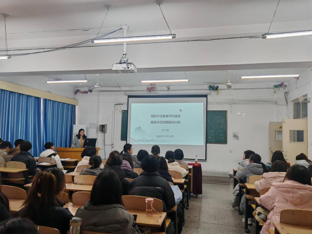 安兰朋以世界中文大会主题、期刊选题和研讨会、论坛、工作坊主题为切入点,对当前学科与专业发展趋势进行了论述。她表示,当前专业发展存在中文教学走向海外、中文教育人才培养实现本硕博贯通的体系化、海外中文学习者低龄化、中文教学实用化、中文教学科技化,以及研究范围泛化、主体集成化、中文二语教学核心内容研究的“边缘化”等特点。她认为,从学科的任务来说,国际中文教育是支持中华语言文化海外传播、支持海外华语传承、通过语言文化交流实现文明互鉴、构建人类命运共同体、实现全人类共同文明进步事业的学科,主要是通过语言文化教学活动、中华语言文化传播者培养、相关领域的科学研究来助力这一事业。安兰朋结合公司汉语国际教育专业实际,从人才培养、团队建设、科学研究三个角度分析了专业发展的重点和难点。最后,她针对以上三方面存在的问题提出专业发展路径,指出人才培养方面应明确培养目标、完善课程体系、规范课程标准、增建实习基地、拓展新的培养模式;团队建设方面需要工程化有组织的课程建设,以实现集成化、系统化、模块化发展,通过听取学术报告、参加研讨会、工作坊与培训等更新教学理念与方法,以积极主动的心态与行动顺应时代的发展;科学研究方面应拓展外延、深化内涵、主动补短,实现集成创新,进行跨学科研究,扩展合作交流。